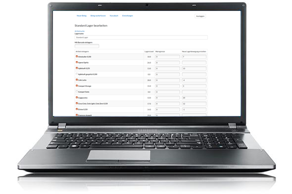 Der Lagerbestand kann entweder direkt beim Artikel oder bequem in einer Liste mit allen Artikeln auf einmal aufgefüllt werden.